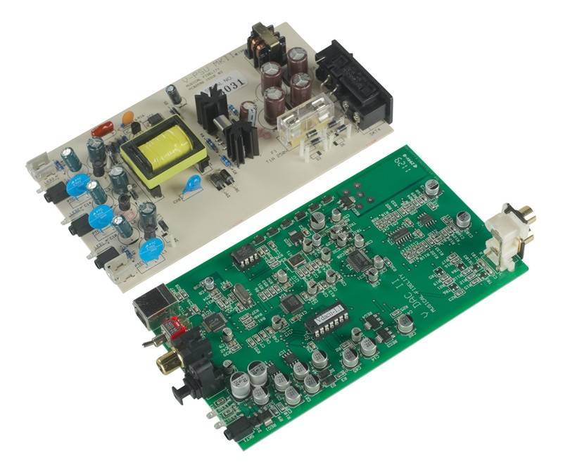 Der Dritte im Bunde ist der Nachfolger des fast schon legendären V-DAC, mit dem Musical Fidelity vor drei Jahren die Fachwelt staunen ließ. Der V-DAC II verfügt über eine ähnliche USB-Anbindung wie sie der V-Link II auch zu bieten hat und spielt seine starken Karten dadurch aus, dass der Signalweg von USB-Receiver (konkret ist das ein TAS1020 von Texas) zum eigentlichen Wandler sehr kurz ist. Die von ihm umgesetzten Datenströme werden, genau wie die S/PDIFSignale der anderen beiden Eingänge, in einen SRC geschickt (das ist ein asynchroner Samplingratenumsetzer), indem die Signale auf 192 kHz/24 Bit hochgesampelt und bei diesem Vorgang für möglichst geringen Jitter auch gleich mit einer neuen, stabilen Clock versehen werden. Als direkt darauf folgender Wandlerchip kommt der BurrBrown 1794 zum Einsatz. Dieser DAC hat mich schon oft in anderen Produkten wie dem exzellenten M1 CLiC überzeugt, die Verwendung in diesem kleinen Zauberkasten ist sowohl sinnvoll als auch erfreulich.