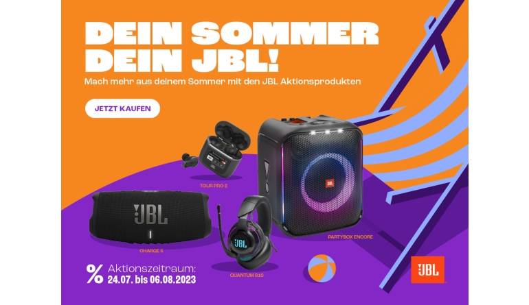 Die Aktion „Dein Sommer - Dein JBL!“ schließt viele weitere innovative und vielfach ausgezeichnete Produkte von JBL ein und garantiert mit satten Rabatten zudem eine gut gefüllte Urlaubskasse. Die Aktion wird sowohl Online als auch im stationären Handel ausgespielt und ist dank der Kooperation mit allen relevanten Vertriebspartnern für Kundinnen und Kunden leicht erreichbar.