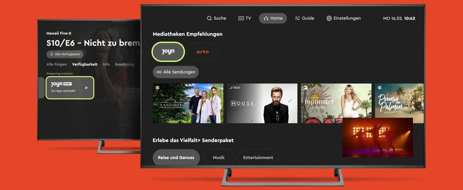 Damit finden Nutzer die Inhalte des Streamingdienstes nun direkt in der HD+ TV-App auf dem Fernseher. Joyn-Highlights werden im Home-Bereich der HD+ TV-App präsentiert, Inhalte lassen sich über den HD+ Guide oder die Suche finden und werden in der Joyn-App wiedergegeben.