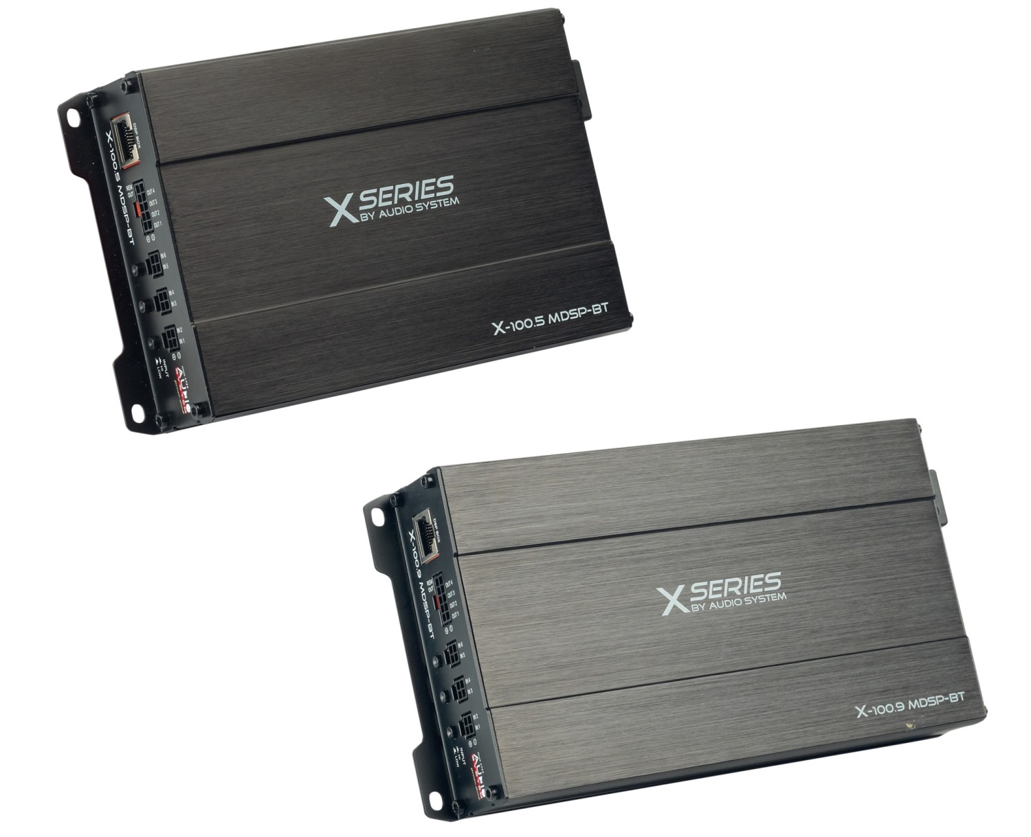 Mit der MDSP-BT Serie liefert Audio System zeitgemäße Multikanalendstufen im Miniformat ab. X100.9 MDSPBT und X100.5 MDSPBT sind Paradebeispiele moderner DSPVerstärkertechnik in kompaktem Format. Die X100.9 beeindruckt mit 9 Kanälen auf nur rund 19 cm Gehäuselänge, kombiniert mit einem 13Kanal DSP, App-Steuerung und hoher Leistung (ca. 100 W pro Hauptkanal). Die X100.5 besticht durch ihr extrem kompaktes Format, ihre fünf Kanäle mit integriertem 9Kanal DSP und denselben DSPBausteinen wie die größere Version. Beide Modelle zeigen, dass modernes CarHiFi mit intelligenter Signalverarbeitung und starker Leistung auch bei kleiner Bauform möglich ist – ideal als Upgrade für Werkssysteme oder ambitionierte Anlagen.