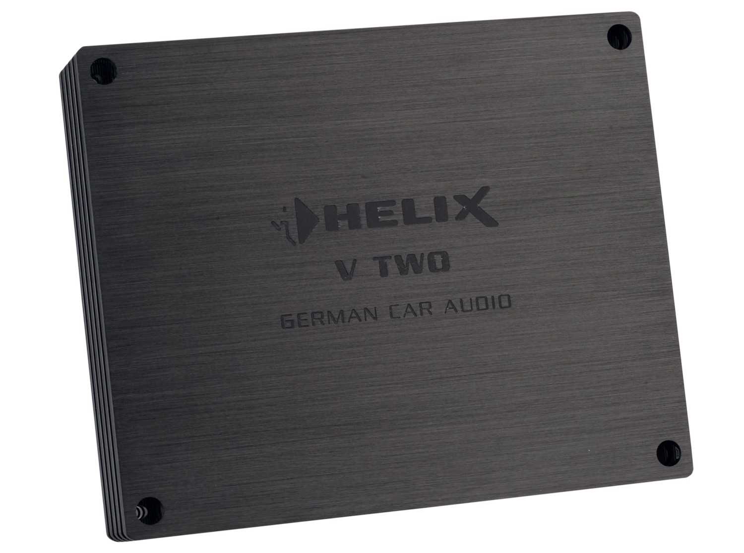 Modernste Verstärkertechnologie trifft innovative Peripherie – so könnte man die Helix V TWO kurz beschreiben. Die V TWO ist eine Class-D Zweikanalendstufe mit hervorragender Leistung und allerbesten Messwerten, die im Car-Audio System für die anspruchsvolleren Aufgaben zuständig ist. Sie treibt mühelos Tieftöner und Subwoofer, wobei sie dafür ausgelegt ist, mit einer Helix DSPEndstufe als Spielpartner zusammenzuarbeiten. Die Eingangssektion der V TWO ist dazu – auch am Hochpegeleingang – speziell darauf abgestimmt, hier fi ndet sich auch mit dem Amplifi er Control Panel (ACP) ein weiteres Highlight der V TWO, das nicht nur Information und Einstellmöglichkeiten bietet wie eine digitale Gainkontrolle, sondern auch als erstes Gerät eine mikroprozessorgesteuerte vollautomatische Einstellung der Signalempfi ndlichkeit ermöglicht.