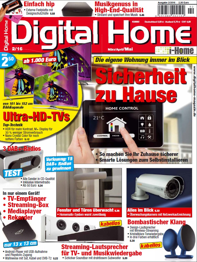 Sogar unterwegs hat man die Kontrolle darüber, was im Haus oder in der Wohnung passiert. „Digital Home“ stellt in der neuen Ausgabe (2/2016) zuverlässige und leicht zu installierende Systeme vor.
