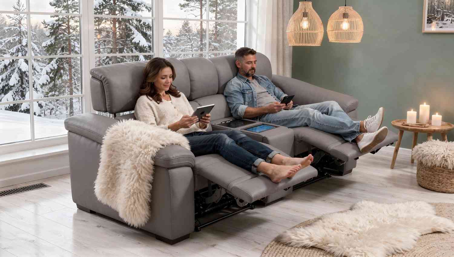 - Paare profitieren von der individuellen Verstellbarkeit beider Plätze und können ihre bevorzugten Entertainment-Formate gemeinsam in optimaler Position genießen.