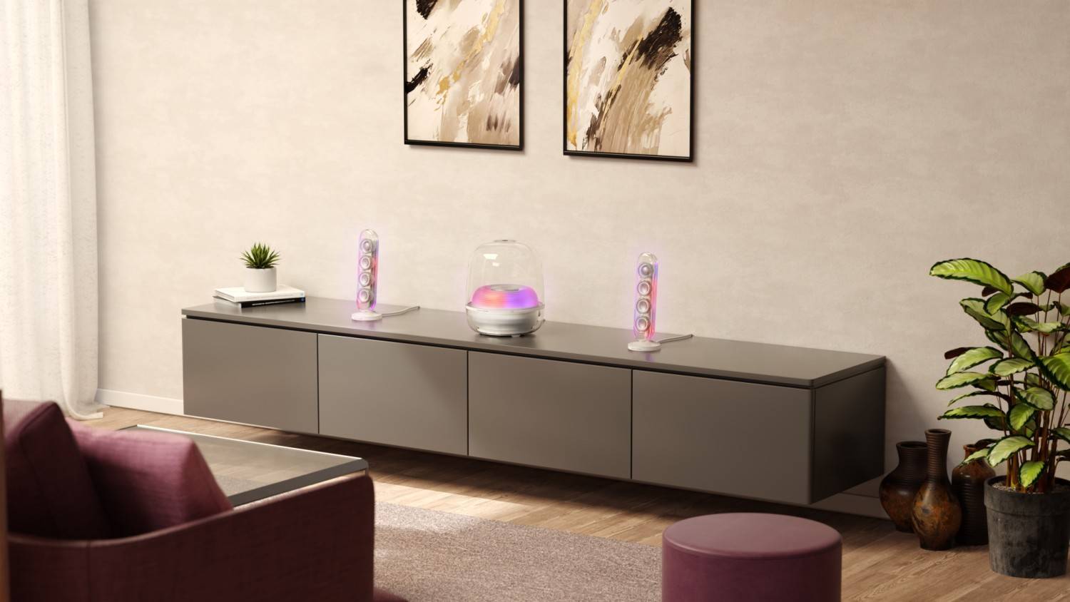 Die Harman Kardon SoundSticks- und AuraStudio-Modelle verbinden audiophile Technik mit skulpturalem Design. Die neuen Wi-Fi-Versionen greifen die ikonische Formsprache auf und ergänzen sie um dezente, moderne Akzente.