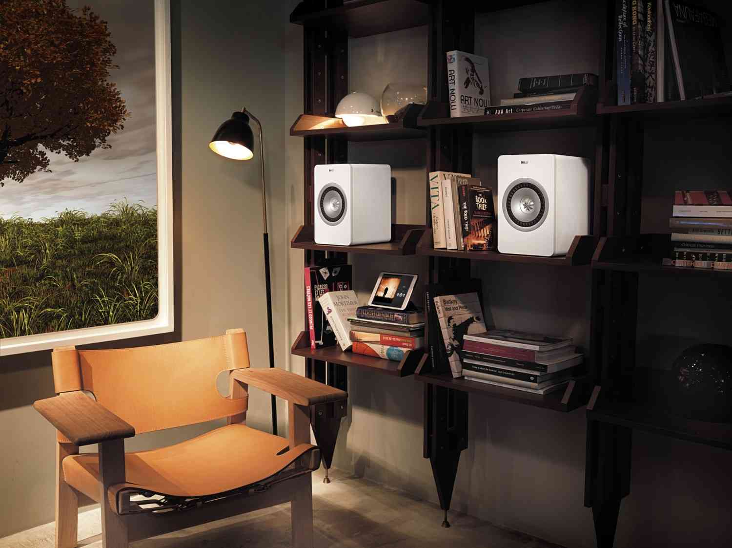 Wir beginnen unseren Hörtest mit den KEF-Monitoren als Desktoplautsprecher, mit rund 80 cm Basisbreite und ebensolcher Distanz zum Hörer. Eingewinkelt auf den Hörplatz, entwickeln die KEF X300A Wireless ein sehr agiles Klangbild, gepaart mit hervorragender Räumlichkeit und sehr guter Transparenz. Der Bass reicht, gemessen an der Boxengröße, enorm tief hinab und spielt richtig druckvoll auf. Dank der Möglichkeit, den Klang per voreingestelltem Equalizer an den Aufstellort anzupassen und den rückseitig eingebauten Bassreflexkanal mit dem mitgelieferten Schaumstoffeinsatz zu verschließen, klingt die X300A Wireless auch mit der Wand im Rücken rund und ausgewogen. Für den Einsatz als Nahfeldmonitor oder PC-Lautsprecher empfiehlt sich übrigens die Desk-EQ-Einstellung, wohingegen die EQ-Einstellung „Stand“ überzeugendere Ergebnisse bringt, wenn der Lautsprecher, wie inzwischen bei unserem fortgeschrittenen Test, frei auf Standfüßen im Raum steht. Im großen Hörraum fanden die X300A Wireless, nur minimal auf den Hörplatz ausgerichtet, im Abstand von etwa 2,5 Metern Platz auf stabilen Standfüßen. Die Kompaktlautsprecher spielen überzeugend präzise auf, mit tollem Timing im Bassbereich und punktgenauer, räumlicher Abbildung. So ist es denn auch ein Leichtes, die sehr plastisch abgebildeten Sänger und Instrumente exakt auf der virtuellen Bühne zu verorten. Das ist natürlich keine große Überraschung – wer die Uni-QTreiber von KEF kennt, weiß genau, wovon wir sprechen. Nur Gutes zu berichten gibt es vom Bass der Wireless-Lautsprecher, der, mit erstaunlicher Kraft untenrum, von den nur 13 cm durchmessenden Tiefmitteltönern in den Hörraum transportiert wird. Nebenbei sei gesagt: Die Wireless-Übertragung ist während der gesamten Testdauer absolut störungsfrei geblieben, egal ob vom Computer gestreamt wurde oder ein iPhone als Quelle diente.