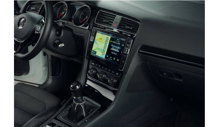 Das X901D-G7 ist perfekt auf den Golf VII abgestimmt. So passte es mechanisch ohne große Umbauarbeiten an die Stelle des VW-Originalradios. Doch auch in die Bordelektronik fügt es sich nahtlos ein. Alle Originalfunktionen von der Klimasteuerung über Reifendruck, Park Distance Control bis hin zur Rückfahrkamera werden unterstützt. Mit dem neuesten Software-Update werden die Navigationshinweise auch in der Multifunktionsanzeige der Armaturentafel angezeigt. Optional verfügbar ist der DVD-Player DVE5300G. Er findet – wie auch das originale VW-Laufwerk – im Handschuhfach Platz.