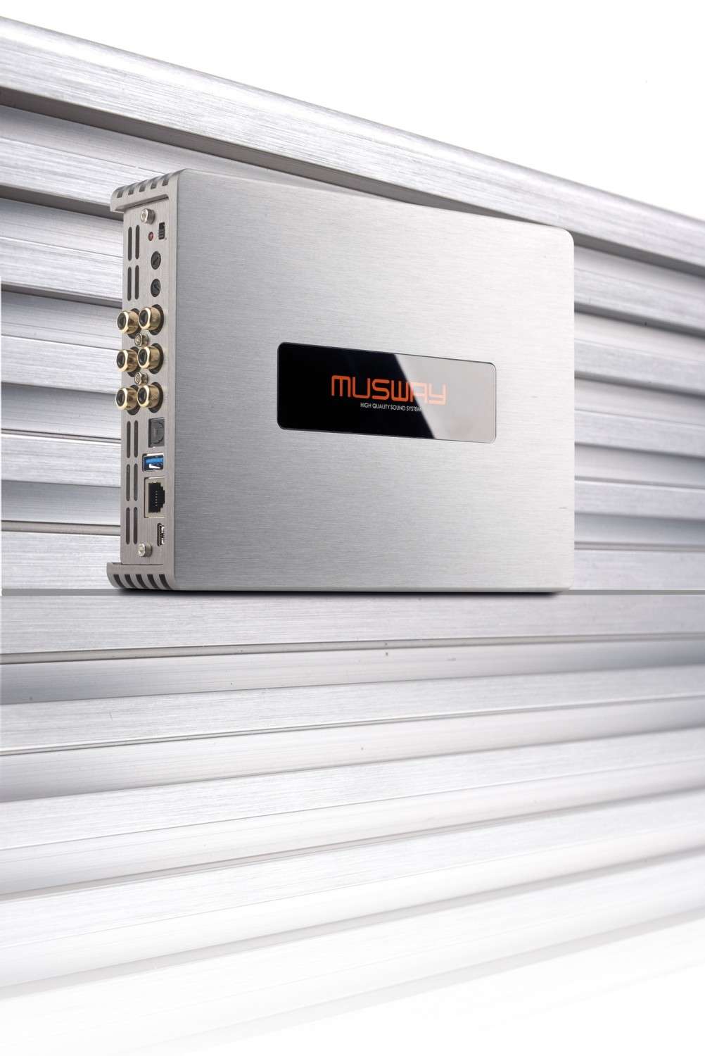 Wer sich keine High-End-Anlage mit Multikanalverstärker und Soundprozessor leisten kann oder will, liegt bei Musway richtig. War bereits die kürzlich renovierte M6 ein günstiges Angebot als Einstieg in die Welt der DSP-Endstufen, kommt jetzt mit der M4+ eine weiteres bezahlbares Modell hinzu. Damit gibt es jetzt drei Musway-Verstärker mit 8, 6 und jetzt 4 Verstärkerkanälen, so dass für jeden etwas dabei ist. Die neue M4+ kommt im gleichen Gehäuse wie die M6, nur eben mit 4 Verstärkerkanälen, die dafür etwas kräftiger ausfallen. Der DSP verfügt über 8 Kanäle, so dass wir vier Niederpegelausgänge vorfinden. Damit eignet sich die M4+ hervorragend als Steuerzentrale auch für umfangreiche HiFi-Anlagen, bei denen weitere Verstärker, z.B. für Rearfill und Subwoofer mit prozessiertem signal angesteuert werden können.