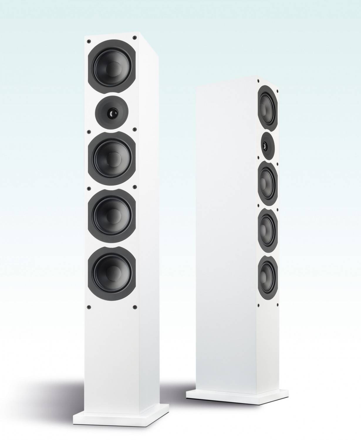 Der in der Saxo 70 verbaute 13er (mit 105 mm Membrandurchmesser) entpuppt sich als gut gemachtes Chassis ohne Schnickschnack. Mit Blechkorb und Ferritantrieb geht er als guter Klassenstandard durch. Die vier Töner pro Box sind zwar baugleich, jedoch nicht gleich beschaltet. Die Saxo 70 ist ein Zweieinhalbwege-System, bei dem die oberen beiden 13er als Tiefmitteltöner beschaltet sind wie in einem Zweiwegesystem, die unteren beiden jedoch als reine Tieftöner. Diese Schaltung bringt Vorteile gegenüber dem Dreiwegesystem, weil im Bassbereich alle vier Treiber laufen (statt nur zwei), was mehr Pegel verspricht. Im Mittelton dagegen gibt‘s keine Experimente, hier verbietet es sich, alle vier laufen zu lassen, aus Gründen des Abstrahlverhaltens arbeiten oberhalb von ca. 600 Hz nur die beiden oberen 13er, die den Hochtöner in die Zange nehmen, was ihn auf Ohrhöhe bringt. Bei dem Hochtöner handelt es sich um eine Gewebekalotte mit 25er-Schwingspule, wie man sie in den meisten Designs findet. Besonders ist jedoch ihre Umgebeung, denn die Montageplatte ist als Waveguide ausgeformt. Dieser ist im Prinzip ein Hornvorsatz, der die Ankoppelung an die Luft beeinfl usst und das Abstrahlverhalten verändert. Im Gegensatz zum Horn soll der Waveguide allerdings nur im Bereich der unteren Grenzfrequenz des Hochtöners wirken, das heißt, den Schalldruck erhöhen. So lässt sich der Hochtöner besser bzw. bei niedrigeren Frequenzen mit dem Mitteltöner verheiraten, und auch das Abstrahlverhalten der ganzen Box wird harmonischer, da der Hochtöner untenrum stärker bündelt, was ihn dem Verhalten des größeren Mitteltöners ähnlicher macht.