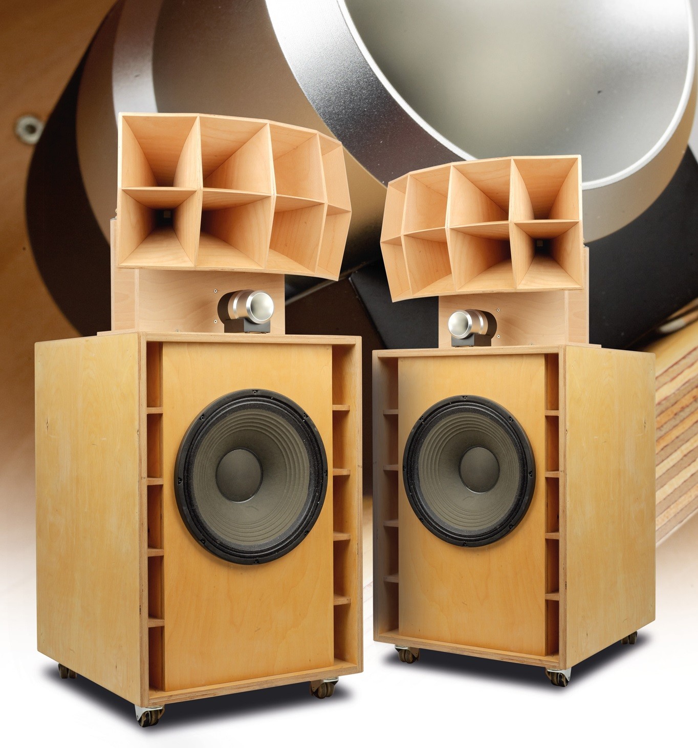 Ein ganz besonderer Leckerbissen ist das von Markus Klug aus Holz gefertigte Multicell-Horn nach Vorbild des legendären Altec 805B. Ein Multicell-Horn ist leicht zu erklären (und ziemlich schwer zu bauen): Statt einer einteiligen Hornkontur findet man hier mehrere kleinere Konturen, die zu einem größeren Ganzen kombiniert werden. Das war vor allem in den Zeiten wichtig, also Hörner noch aus Metall oder Holz gefertigt wurden und ab einer bestimmten Trichtergröße immer stärker resonierten. Klar: Die kleinteiligere Bauweise verhindert große, frei schwingende Flächen. Außerdem ergibt sich ein angenehmer Nebeneffekt: Die kleineren Hörner haben jedes eine eigene Abstrahlrichtung und -charakteristik, so dass die Bündelung sehr gut gesteuert werden kann und je nach Bauweise auch breiter wird als bei einem normalen Horn.