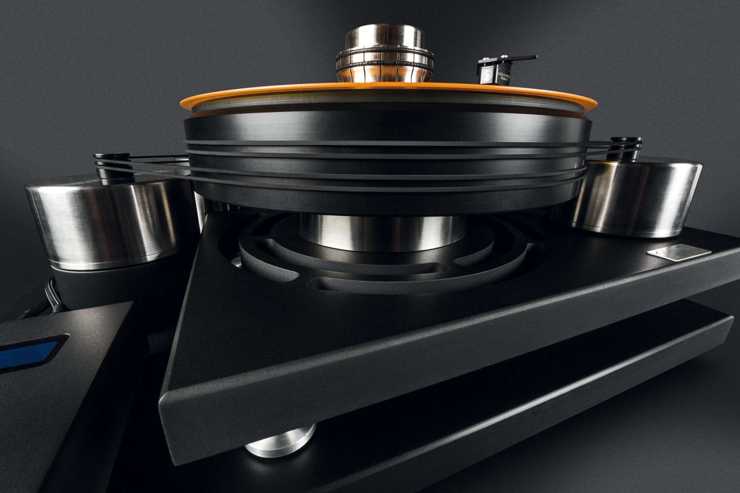 Denn in Sachen Aussehen, Masse und Leistung trennen den Initial Max vom ursprünglichen Initial zwar nicht Welten, aber doch ein paar Gewichtsklassen. Die Devise heißt bei Sikora beim Laufwerk immer: Masse. Knapp 30 Kilogramm bringt schon der der Initial auf die Waage, nicht wenig davon wiegt die Zarge, die aus einem massiven Stück Aluminium besteht, das um das Tellerlager herum konzentrisch ausgefräst ist, um eventuelle Resonanzen vom Tellerlager in Richtung Tonarmbasis zu minimieren. Dazu kommt beim Initial Max noch eine massive Basis aus Aluminium, die fester Bestandteil des Konzepts ist. Basisplatte wie Zarge ruhen auf drei stumpfen Metallkegeln mit einer runden Aussparung, deren Gegenpart in einer Keramikkugel besteht. Die Kugeln legt man in die entsprechenden Unterlegscheiben. An der üblichen Stelle hinten rechts am Laufwerk findet sich die Tonarmbasis mit zwei stabilen Stahlstangen als seitliche Ausleger, die die eigentliche Basis tragen. In der Max- Version kommt dazu eine zweite Basis, die bei unserem Testplattenspieler unbesetzt geblieben ist, um den Fokus auf den eigentlichen Star des Ensembles zu richten: Den neuen Tonarm. Dieser hört auf den schönen Namen KV-12 und kommt hier in der sozusagen zivilen Variante zum Einsatz. Was man dem schwarz lackierten Armrohr nicht ansieht, sind die Kevlarfasern, aus denen es gefertigt wird. Damit vertreten wir in diesem Test den etwas konservativeren Standpunkt – selbstverständlich kann man den KV-12 auch mit dem satten Gelb ordern, das man mit Kevlar gemeinhin verbindet – sozusagen passend zu älteren B&W-Boxen. Der KV-12, der Name verrät es ja schon, ist ein 12-Zoll-Tonarm. Das Bauprinzip ist Einpunkt-Tonarm und folgt damit den Kuzma-Tonarmen, die Sikora seit jeher sehr gerne auf seinen Laufwerken eingesetzt hat. Natürlich ist der Designrahmen, der für die Konstruktion eines Tonarms zur Verfügung steht, recht eng, aber der polnische Hersteller hat es geschafft, ein eigenes und dabei recht gefälliges Design zu schaffen, das man gerne ansieht und dem man auch einiges zutraut, so solide wirkt es. Zwei kleine Kritikpunkte sehe ich noch im Finish des Designs: Neben der eleganten Glocke der zentralen Lagereinheit sieht das Maschinengewinde des Gegengewichts noch etwas zu rustikal aus. Und: Die Führung des Antiskating- Fadens finde ich persönlich optisch etwas unglücklich gelöst. Zu den inneren Werten: Der KV- 12 ist ein Einpunkter, der durch ein Silikonbad gestützt wird und damit fast die Stabilität eines kardanischen Arms erreicht. Betrachtet man die Fotos, erkennt man auch gut, warum: Der Dorn des Einpunktlagers sitzt auf Höhe des Armrohrs, während der Arm am Masseschwerpunkt großflächig auf dem Silikonbad „schwimmt“. Hier gibt es noch die Möglichkeit, die Eintauchtiefe etwas zu variieren, ganz einfach durch eine mehr oder weniger großzügige Füllung der Ölwanne. Bis auf die erwähnten Punkte ist der Sikora-Tonarm wirklich makellos gefertigt und von einer wunderbaren Anfassqualität Der Preis von 4.500 Euro ist nach heutigen Maßstäben wohl angemessen – eine Vorrichtung zur Höhenverstellung „on the fly“ schlägt mit noch einmal 1.500 Euro zu Buche. Das wäre dann genauso viel wie der Sikora Initial in der Basisausführung – die hier nicht nur durch die zusätzliche Basis, sondern auch durch einen zweiten Motor aufgewertet wird, der der ersten Antriebseinheit genau gegenübersteht – klar: Somit neutralisieren sich die Zugkräfte der jeweils zwei Riemen, die pro Pulley die Antriebskraft auf den Teller übertragen. Die zweite Motordose steht übrigens nicht auf der Plattenspielerzarge, sondern auf ihrem eigenen Podest auf der Basisplatte. Versorgt werden beide DC-Motoren über eine separate Motorsteuerung in einem zur Zarge passend lackierten Stahlgehäuse. Komfortabel lässt sich hier für die beiden anwählbaren Geschwindigkeiten die Feinjustage durchführen. Dafür gibt es sogar ein einfaches Display. Der Teller des Initial wiegt satte 4 Kilogramm und besteht aus Delrin, einem Markennamen für Polyoxymethylen, kurz: POM. Dazu kommt in der Max-Variante eine zusätzliche Glasscheibe mit Stahl- Inlay. Der so effektiv auf Masse gebrachte und bedämpfte Teller dreht sich auf einem invertierten Tellerlager mit einem aus der Zarge ragenden Edelstahldorn mit einer Keramikkugel in der Spitze. In der Lagerbuchse im Teller findet sich das entsprechende Gegenstück in Form eines Lagerspiegels, ebenfalls aus POM, sodass ein komplett geräuschfreier und verschleißarmer Betrieb gewährleistet ist. Das Tellergewicht hat das außergewöhnliche „Skelettdesign“, das wir schon immer als sehr attraktiv empfunden haben. Das Massekozept Sikoras geht in jeden Fall auf: Das Bild großer Schwärze in leisen Passagen und spürbarem Raum zwischen Klangereignissen und Instrumenten zieht sich durch alle aufgelegten Musikrichtungen und strahlt große Ruhe und Souveränität aus. Dabei gibt es, soweit auf der Aufnahme vorhanden, auch Ecken und Kanten, selbst an den äußeren Rändern des hörbaren Frequenzbereichs. Bei Aufnahmen klassischer Musik ist der Sikora ganz klar in seinem Element und leuchtet die großen Dimensionen eines Konzertsaals wunderbar aus. Dynamische Spielweisen stellt das Laufwerk völlig nachvollziehbar und völlig unangestrengt dar – ganz klar das Verdienst der hohen Masse und der Verdoppelung des Antriebs. Bei Rockmusik hingegen gibt es durchaus auch „Schweißgeruch“ – immer vorausgesetzt, dass die entsprechende Produktion so etwas wie Dynamik auch vorgesehen hat. Doch, das macht eine Menge Spaß, wenn bei AC/DC das Schlagzeug, der Bass und die Rhythmusgitarre des seligen Malcolm Young durchmarschieren und das solide Brett bilden, auf dem sich die Sologitarre und der „Gesang“ entfalten können. Die Anführungszeichen sind übrigens nicht böse gemeint … Der Tonarm trägt seinen eigenen Part zur souveränen Darbietung bei, kann er doch mit seiner großen Länge, der geschickten Materialk
